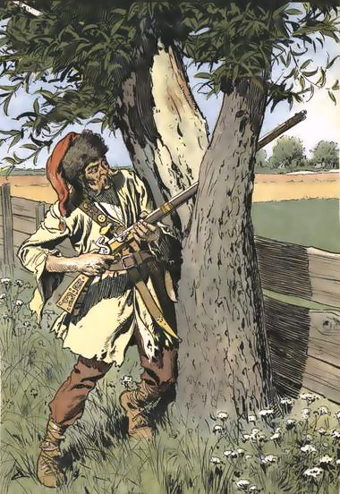 In 1826, James Fenimore Cooper created the classic character Hawkeye in his best-seller The Last of the Mohicans, a fictional archetype who embodied the hardiness, pluck and independence of the men who carried rifles in that conflict. In fact, Cooper’s iconic protagonist was often referred to by his French opponents la Longue carabine: “long rifle.”