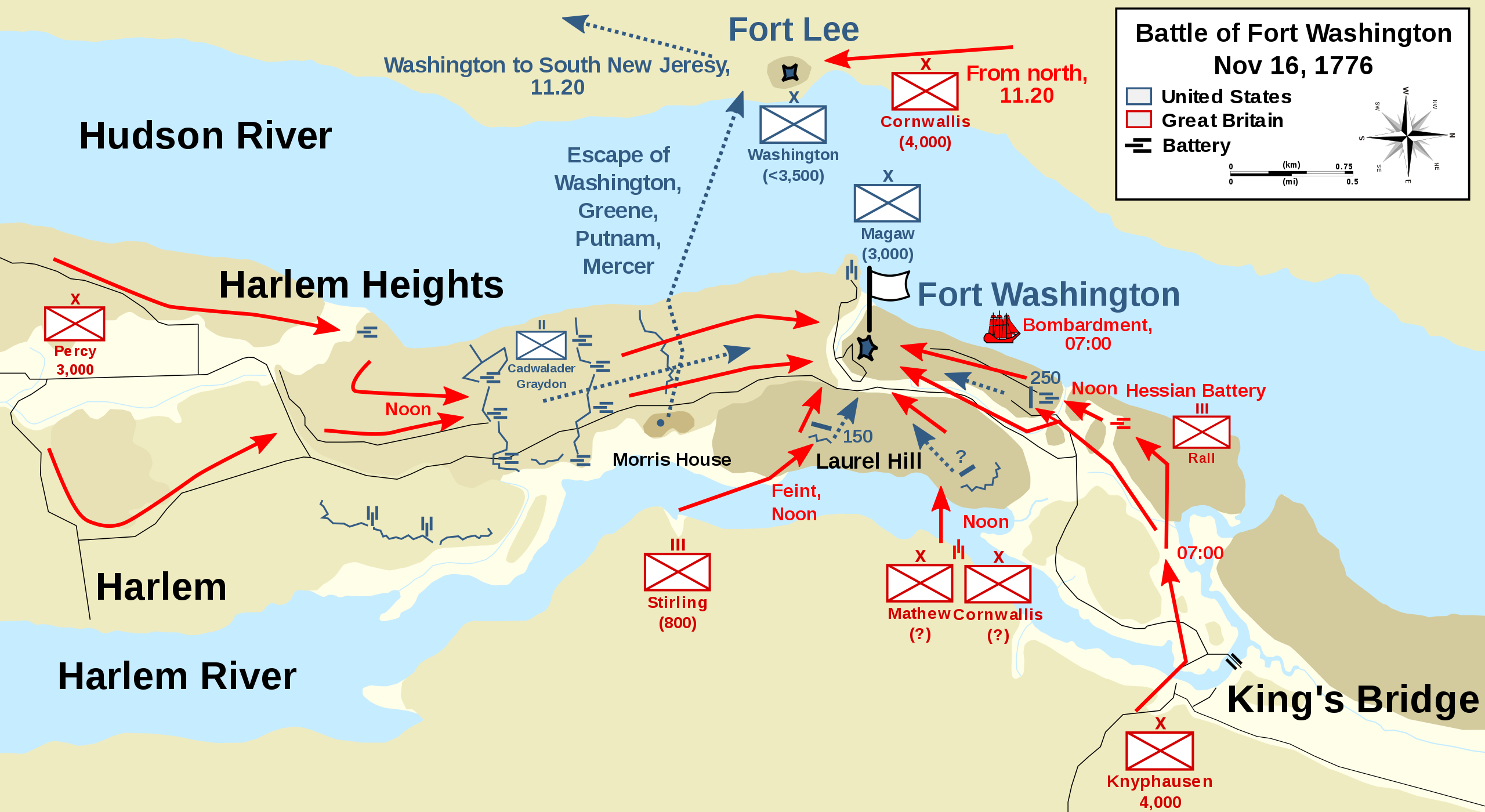 Schenawolf, Harry. “The Battle of Fort Washington Was the Final Devastating Chapter in George Washington’s Disastrous New York Campaign.” Revolutionary War Journal, May 17, 2020. https://www.revolutionarywarjournal.com/the-battle-of-fort-washington-was-the-final-devastating-chapter-in-george-washingtons-disastrous-new-york-campaign/.