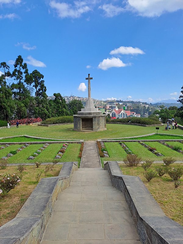 Dr. Lyman will take the group by foot on a battlefield tour of Kohima ending at the cemetery where the white lines of the old tennis court are still marked into the perfectly clipped lawn.